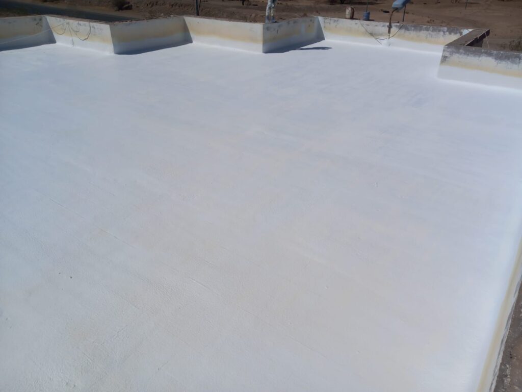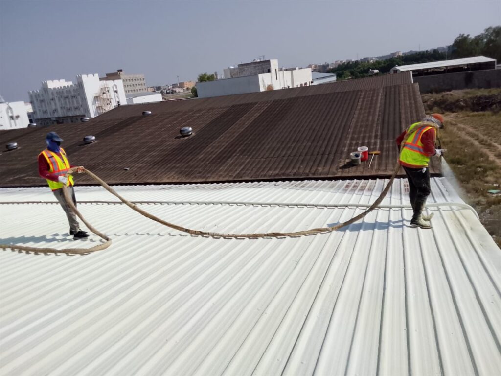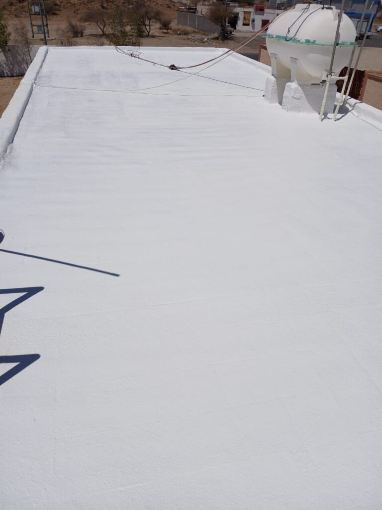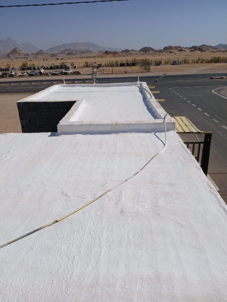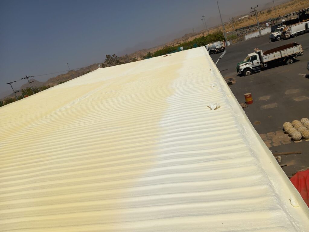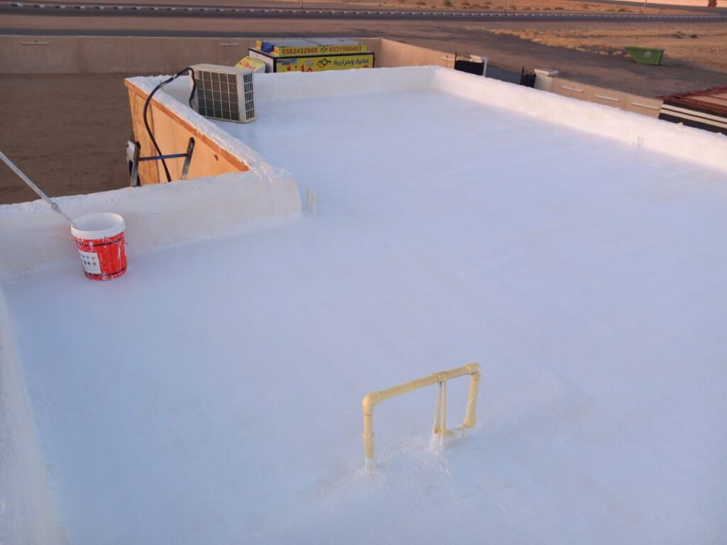 بعد الانتهاء من الرش، تُضاف طبقة حماية من الأكريليك أو السيليكون لحماية الفوم من أشعة الشمس والعوامل الجوية.